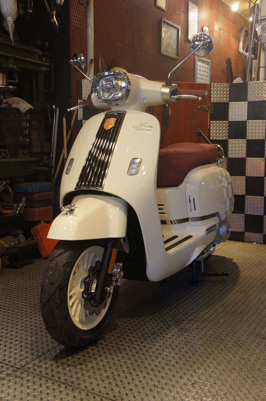 レッグシールドにヘッドライトのLambretta1型をリバイバルしたJPS。